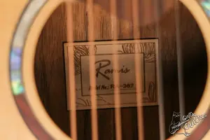 Симпатичная компактная акустическая гитара 3/4 с топом из массива ели. Инструмент новый, в эксплуатации не был. На складе у поставщика при хранении появилась трещина в верхней деке, у нас в мастерской ее заклеили, все сделано надежно, опасности она не представляет.