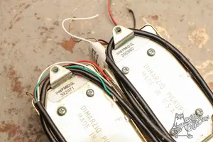Сэт датчиков. 15,8 и 15,3 кОм. Очень крутые датчики, особенно для перегруза, полный аналог Bare Knuckle Juggernaut, очень похожи на Dimarzio Titan. Хамбакеры в золоте, что редкость.