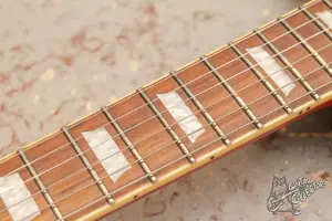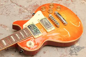 Уменьшенный LP из махагона с красивым топом, окантовкой и вклеенным грифом. Технически в прекрасном состоянии, все звучит и работает, лады совсем недавно шлифовались, запас большой. Косметически без происшествий, только следы эксплуатации и потертости по лкп. В неке изначально был встренный усилитель, но сейчас стоит стандартная распайка на 2 хамба.