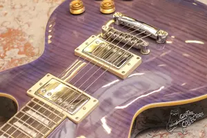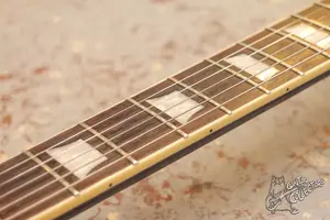Тяжеленький стандарт с красивым кленовым топом в редком цвете. Технически без нареканий, гриф ровный, все исправно. Косметически без сколов, только коцки по лаку и потертости. Колки заменены, строй держат.