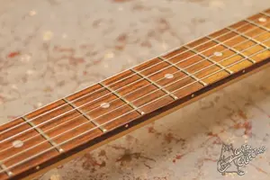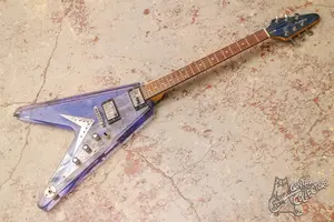 Крайне редкая и тяжелая акриловая стрела. Технически в порядке, гриф ровный, струны низко ,все звучит и строит. Косметически без сколов, только потертости. На корпусе у крепления грифа откололся кусочек через который проходят два болта крепления грифа, но в целом это не критично, все держится при желании его можно подклеить и под некплейтом это не бросается в глаза.