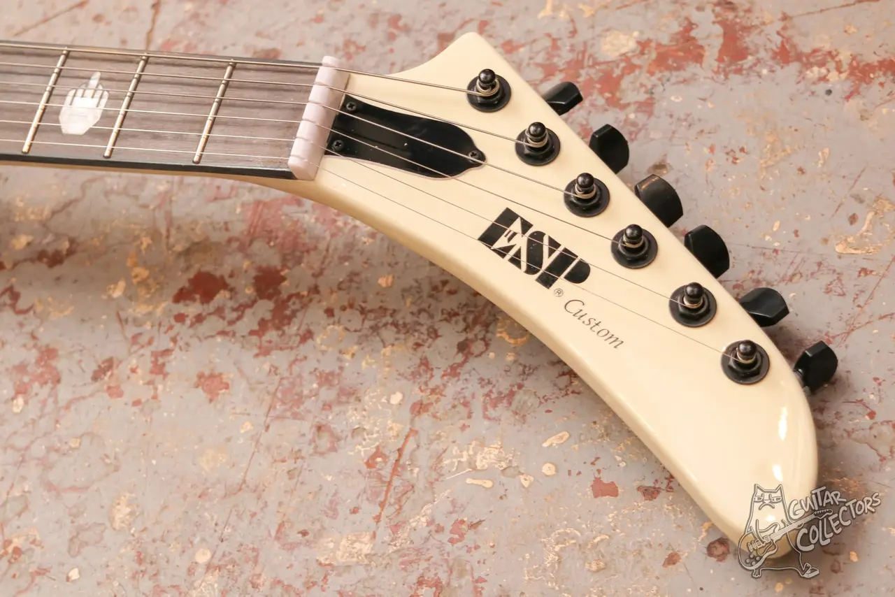 Белый эксплорер с вклеенным грифом. Копия гитaры ЕSР, фpoнтмeна Меtalliсa. Технически и косметически все преркасно, состояние нового инструмента, по сборке удачный экземпляр, все ровно, звучит и строит, даже торцы ладов сделаны “капелькой”. Датчики здесь установлены с хром крышками.