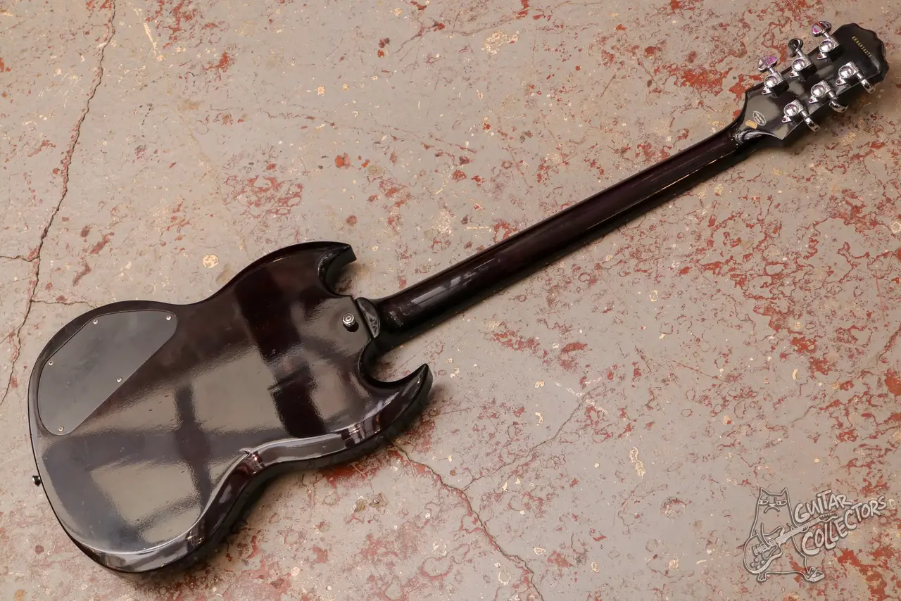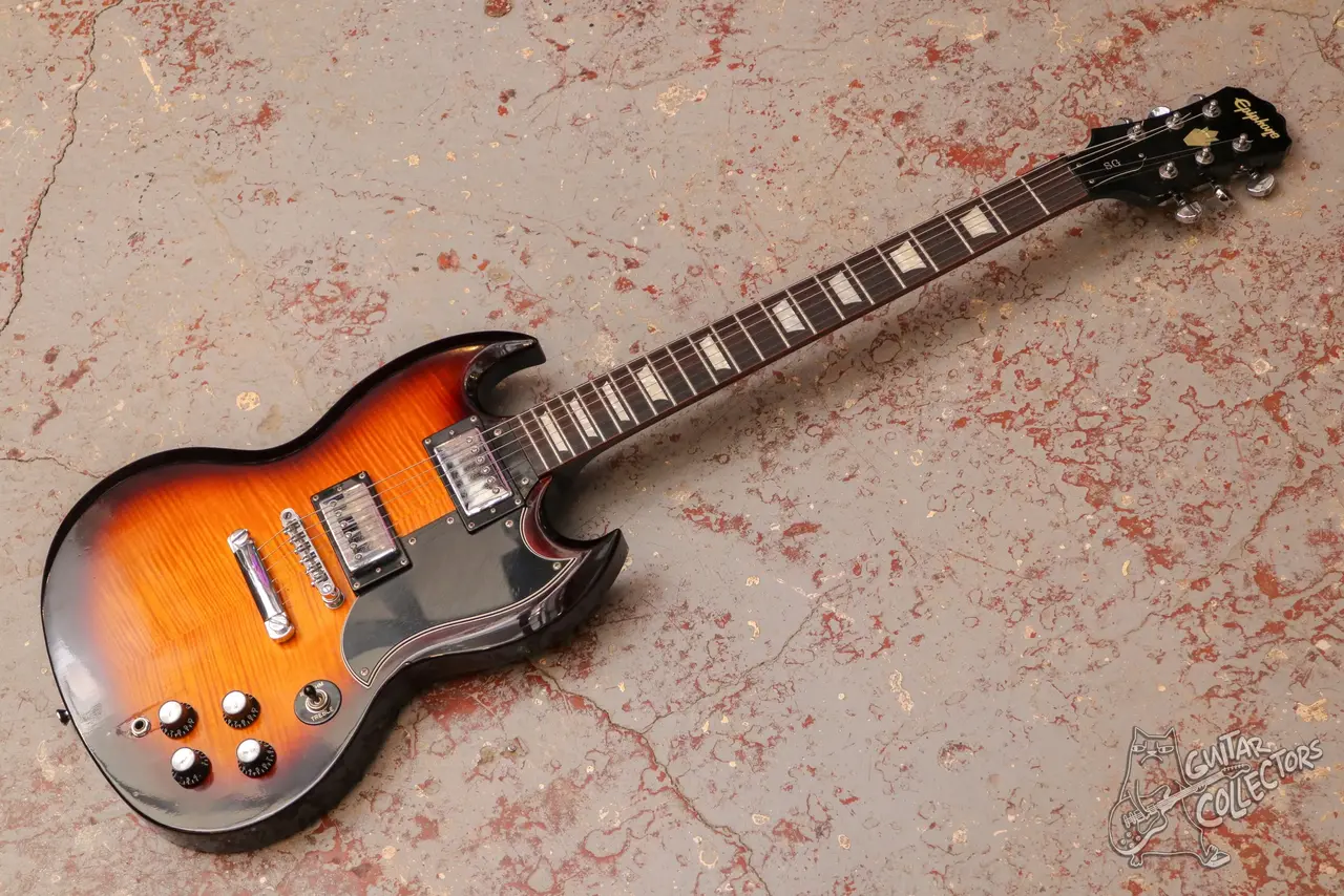 Редкий SG с красивым кленовым топом. Технически в полном порядке, запас ладов есть, анкер исправен, строй держит. Косметически без серьезных повреждений и сколов, только потертсоти и вмятинки по лкп. Есть подклеенная трещинка около джека, опасности не представляет.