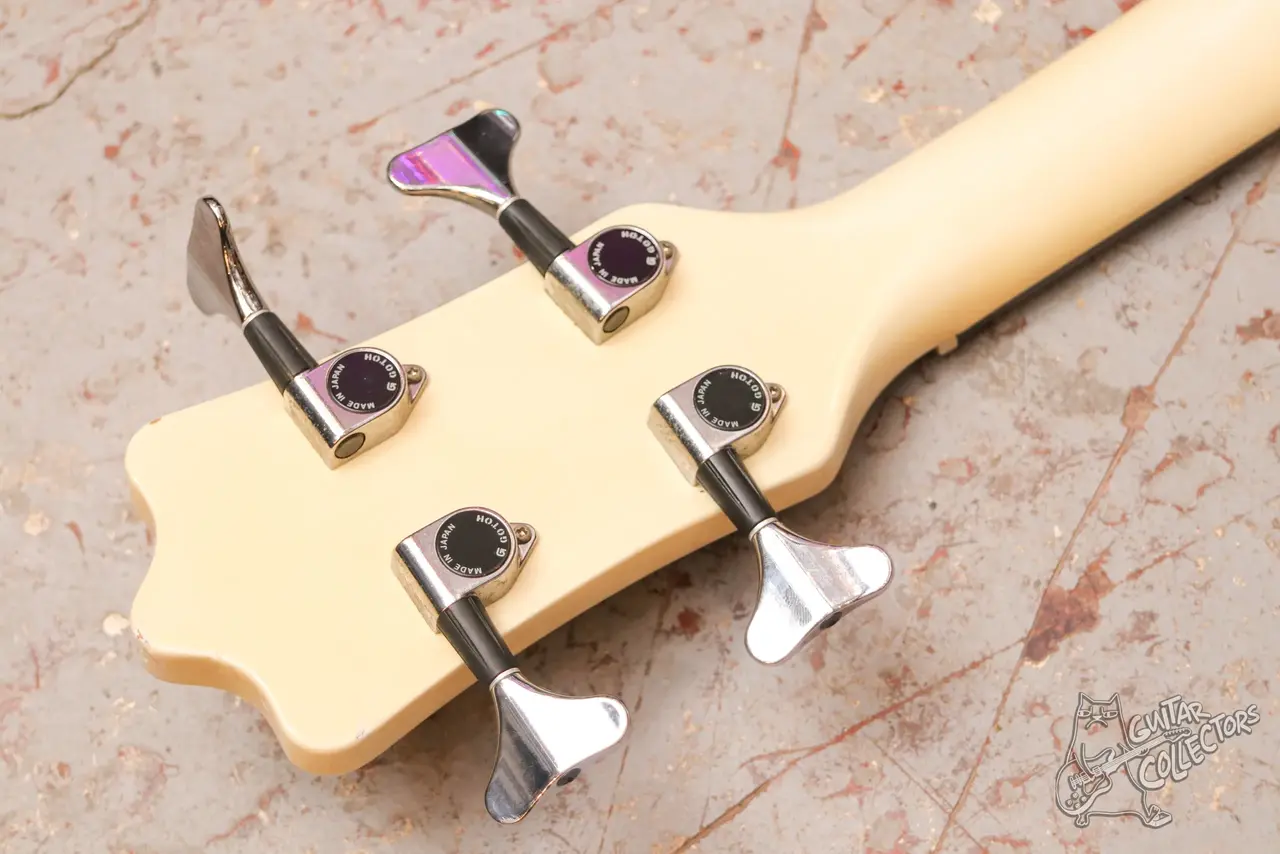 Стильный японец с мощными датчиками, окантовкой и укороченной мензурой. Технически в полном порядке, Гриф ровный, струны низко. Косметике есть небольшие сколы, в глаза не бросаются. Наклейку снимать не стали, редкий случай, когда стикер хорошо смотрится. Датчики здесь гитарного формата, так что при желании можно менять на что угодно, но и родные рельсы вполне адекватно себя видут.