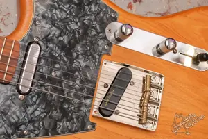 Шикарный ольховый оффсет с сетом Lace Sensor, и моднейшим бриджем Joe Barden и струнами сквозь корпус. Инструмент сочитает в себе сразу три культовых фендера, корпус - Jazzmaster, электроника - Telecaster, гриф - Stratocaster. Корпус и гриф производства Warmoth, это американская контора делает части гитар по лицензии Fender, в кармане и на пятке клеймо имеется. Состояние прекрасное, все строит и звучит. Гриф довольно толстый, с традиционной для вармут микроподстройкой анкера сбоку пятки. Корпус из двух кусков запеченной ольхи. Собран без экономии на комплектующих, стоят хорошие потцы, распаян Treble Bleed. Бридж от буржуйской бутиковый конторы Joe Barden с латунными седлами стоящими под углом для компенсацией мензуры.