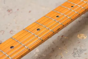 Классический Японец из начала 90х с цельнокленовым грифом и тремя яркими синглами. Технически в порядке, гриф ровный, все исправно. Косметически имеется сильный и стильный естественный релик, трещинки по лкп и коцки. но дерево без повреждений. Датчики заменены на сет альнико синглов Waaah pickups, сам пикгард родной, вся фурнитура также сток.