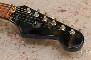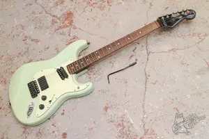 Харизматичный сборный страт с шикарными комплектущими. Корпус от Fender Mexico, ольха, все стандартно. Гриф японский Yamagakki, клен с палисандром на накладке сделан под ST62 с анкером в пятке, 22 ладами, мензурой в 25.5". По электронике тут жирный жир: в бридже хамбакер Suhr Doug Aldrich, в неке рельса DiMarzio DP182 Fast Track 2 и неопознанный но очень похожий на сеймур альнико сингл. Управление вполне понятное: маленький свитч выбирает какой из нековых датчиков включен, в остальном обычный 3х позиционник, громкость (она же KillSwitch) и тон. По железу: колки Gotoh локовые, тремоло Wilkinson. Состоояние как технически так и по косметике очень хорошее.