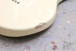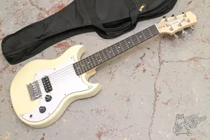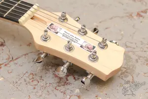 Маленькая и легкая гитара с одним хамбом. Технически в порядке, вс звучит и строит. Косметически есть один скол. В комплекте родной чехол.