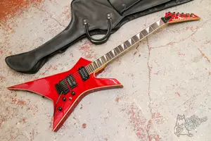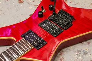 Редкий, красивый и интересный Келли-стар с красивым топом, окантовкой, зубами на накладке, сетом сеймуров и немецким надежным флойдом. Технически все прекрасно, в эксплуатации был не много. Косметически без сколов, только потретости и небольшие коцки по лкп рога целые. Даже чехол родной в комплекте. Такую звездочку можно смело брать в коллекцию, вторую такую найти будет непросто.