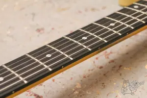 Телек с парой ярких альнико синглов, бриджем с латунными седлами и качественным заводским реликом на уровне серии Road Worn от Fender. Технически все прекрасно, звучит и строит, струны низко. Косметически без повреждений. Есть микровинт по грифу, равномерный и не влияющий на отстройку и высоту струн, без горобов, убирать его смысла никакого нет и дальше он не пойдет, гитаре уже 10+ лет, фото прилагается. На конкретном экземпляре с завода стоит не палисандр на накладке, а эбони, либо что-то очень похожее.