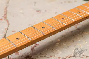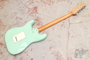 Страт с хамбом в бридже, кленовой накладкой и двухболтовым тремоло со стальными седлами. Технически и косметически в очень хорошем состоянии, в эксплуатации был не много. Колки заменены, в остальном все сток.
