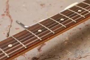 Юбилейный ольховый страт с альнико синглами, хамбом в бридже и двухболтовым тремоло. Яркие датчики, отличная сборка и надежное железо. Инструмент в очень хорошем состоянии, все родное, звучит и работает, вложений не требует. Косметически без сколов. Единственный момент, немного устала резьба под рычаг, рычаг родной есть, он держится, но прокручивается.