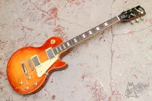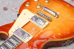 Копия стандарта с окантовкой и красивым топом. Технически в полном порядке, сборка адекватная, по грифу проблем нет, торцы ладов сделаны аккуратно “капелькой”, лак прозрачный, из чего сделан инструмент хорошо видно со всех сторон. Вложений гитара не требует, звучит, строй держит. Удачный по сборке экземпляр.