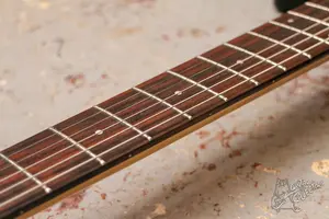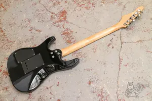 Удобный ольховый суперстрат с HSS набором датчиков, шестиболтовым тремоло и 24 ладами. Технически в порядке, все строит и звучит, гриф ровный, струны низко. Косметически имеется пара сколов по корпусу.