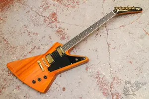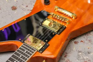 Классический эксплорер с парой хамбов и вклеенным грифом. Технически в полном порядке, сборка у данного экземпляра адекватная, лак прозрачный, деревяшку видно, по грифу проблем нет, гриф ровный, анкер работает. Вложений гитара не требует, звучит, строй держит.