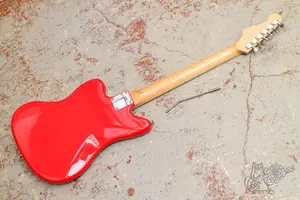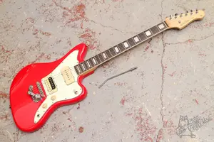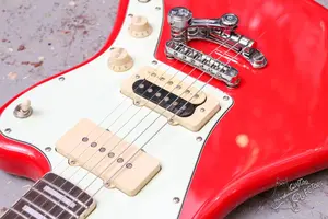 Симпатичный ягуар от Харли Бентон с хамбом и тремоло бриджем. Технически и косметически в полном порядке, все исправно. Бриджевый датчик заменен на хамбакер G&B с PRS SE, сопротивление в райое 7.8кОм, в ручке тона сделана пуш-пул отсечка, также переключатель стоит switchcraft, потц громкости CTS. Бридж заменен на вибрато, работает очень мягко, примерно как бигсби по ощущениям. Благодаря модификациям возможности инструемнта существенно расширились, теперь и на перегрузе можно навалить и серф покачать с рычагом.