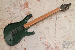 Великолепный суперстрат в шикарном цвете с накладкой из красивого куска печеного клена со струнами сквозь корпус и сетом мощных хамбов с уствновкой прям ов корпус без рамок. Стильный инструмент без излишеств с отличной сборкой, подбором материалов и вниманием к деталям. Состояние нового. Цвет на фото крайне сложно передать, в живую выглядит круче, он достаточно глубокий и темный, но при этом ярко переливается на свету.