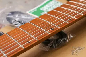 Мультимензурный восьмиструн с кленовой накладкой, струнами сквозь корпус и ярким переливающимся хамелеон цветом. Инструмент новый, в эксплуатации не был, все звучит и строит.