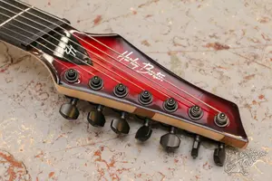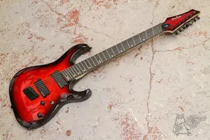Семиструнный мультимензур с красивым фигурным топом, парой мощных хамбов, локовыми колками, грифом из 5ти кусков и струнами сквозь корпус. Состояние очень хорошее, в эксплуатации был совсем не много, все родное, строит и звучит, повреждений не наблюдается.