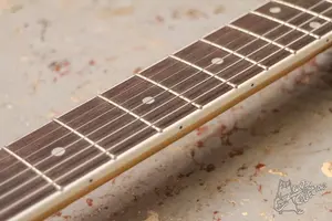 Яркий джазмастер с парой хамбов, 22 ладами, окантовкой по грифу и инкрустацией прямоугольниками. Технически в полном порядке, сборка адекватная, гриф ровный, анкер работает, звучит, строй держит. По косметике без повреждений, в эксплуатации инструмент практически не был.