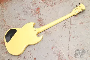 Белый СГ стандарт с кантом по грифу, тремя хамбами и бигсби тремоло.Стильный и красивый инструмент. Технически в полном порядке, по грифу проблем нет. Вложений гитара не требует, звучит, строй держит.