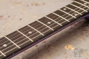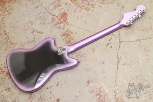 Джазмастер в интересном цвете с парой P90, 22 ладами и тремоло. Технически в полном порядке, сборка адекватная, гриф ровный, анкер работает, звучит, строй держит. По косметике без повреждений, в эксплуатации инструмент практически не был.