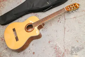 Классическая гитара 4/4 с вырезом. Состояние хорошее, в эксплуатации инструмент был не много, все строит и звучит. В комплекте чехол.