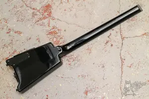Маленький и легкий безголовый кореец со сквозным грифом, HSS конфигурацией датчиков с отсечкой и тремоло бриджем. Технически в порядке, гриф ровный, все звучит и строит. Косметически без серьезных повреждений, только следы эксплуатации. На накладке 3 лада (20-22) частично скалопированы, но это не мешает и в глаза особо не бросается. В комплекте оригинальный кожаный чехол по форме.