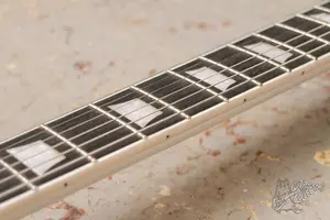 Белый СГ стандарт с кантом по грифу. Копия гибсона. Инструмент в эксплуатации не был. Технически в полном порядке, по грифу проблем нет. Вложений гитара не требует, звучит, строй держит.