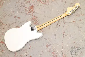 Белый мустанг. Технически в полном порядке, сборка адекватная, гриф ровный, анкер работает, звучит, строй держит. По косметике без повреждений, в эксплуатации инструмент практически не был.