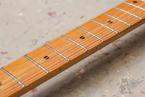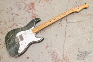 Модерновый страт с красивым кленовым топом, кленовой накладкой, хамбом в бридже, двухболтовым тремоло и локовыми колками. Состояние хорошее, в эксплуатации был не много, все звучит и работает, повреждений не наблюдается.