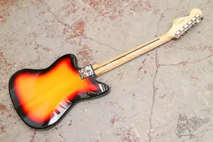 Яркий джазмастер с парой хамбов, 22 ладами, окантовкой по грифу и инкрустацией прямоугольниками. Технически в полном порядке, сборка адекватная, гриф ровный, анкер работает, звучит, строй держит. По косметике без повреждений, в эксплуатации инструмент практически не был.