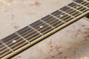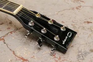 Черный дредноут. Технически в полном порядке, лады после шлифовки. струны низко, все строит и звучит намного лучше чем с завода. По косметике есть трещинки по лкп, но ничего серьезного.