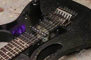 Подписная модель Стива Вая. Шикарный японец с текстурным матовым покрытием и ультратонким профилем грифа Super Wizard. Технически в прекрасном состоянии, все строит и звучит, струны низко. В эксплуатации был много, но очень бережно, повреждений нет, только потертости и небольшие коцки. Флойд заменен на свежий надежный Gotoh 1996t, пикгард заменен на черный, так как родной зеркальный потрескался от времени. Датчики также не родные, стоит сет Ibanez V7 S1 V8 и бриджевый хамб подвергся моддингу в виде замены магнитов с альнико на керамику для более мощного выхлопа. Топ лок так же стоит новый с креплением на саморезах, так что родные отверстия от винтов топ лока были заделаны. Да. инструмент не в стоке по обвесу, но деревяшка здесь в хорошем состоянии, лады с запасом и флойд бодр и свеж, так что в целом это надежная шред машина готовая разрывать стадионы твоими соляками.