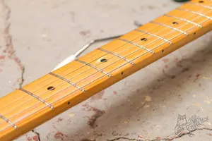 Юбилейный мекс высокой серии с цельнокленовым грифом, яркими альнико датчиками, винтажными колками и шестиболтовым тремоло со стальными седлами. Техничсеки все прекрасно, лады только после шлифовки, все ровно и красиво, струны низко. Косметически есть пара незаметных коцек по лкп, в целом выглядит свежо и бодро.