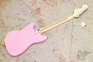 Легкий розовый мустанг с парой хамбов и фикс бриджем. Удобный и простой инструмент. Технически все в полном порядке, Косметически без происшествий, в эксплуатации был совсем немного.