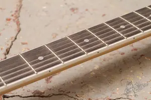 Яркий джазмастер с парой хамбов, 22 ладами, окантовкой по грифу и инкрустацией прямоугольниками. Технически в полном порядке, сборка адекватная, гриф ровный, анкер работает, звучит, строй держит. По косметике без повреждений, в эксплуатации инструмент практически не был.