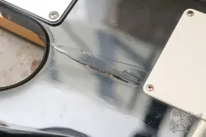 Сборный страт с тремя синглами и шестиболтовым тремоло. Технически в порядке, строй держит, по ладам все звучит. Гриф кленовый от Aria STG, ровный, анкер в порядке, по ладам все звучит. Корпус липа, происхождение неизвестно, но вполне приличный. На корпусе сзади есть трещина, но она вдоль корпуса и на нее не приходится никакой нагрузки, опасности она не представялет, на звук влияния не оказывает, в глаза не бросается. За свои деньги вполне ровный рабочий страт.