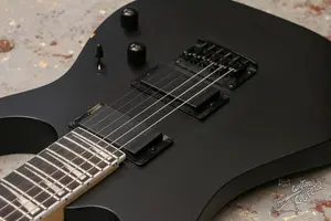 Черный матовый суперстрат со струнами сквозь корпус 24 ладами, кантом по грифу и парой хамбов. Технически в порядке, гриф ровный, анкер работает, все звучит и строит. Косметически есть маленькие сколы и потертости по лкп.
