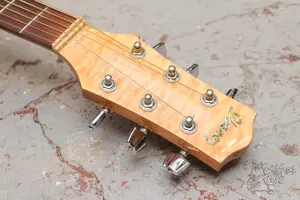 Крайне редкая акустика с EW корпусом полностью из стеганого клена и флорентийским вырезом. Это так называемая spot model, в каталогах ее не было, выпускалась очень мелкой серией. Состояние хорошее, гриф ровный, все строит и звучит, повреждений нет, только небольшие коцки и потертости. Из недостатков не работает выход через джек у премпа, но работает через XLR, поэтмоу в комплекте идет провод XLR-Jack для подключения.
