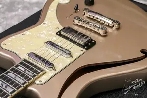 Стильный полуакустический ольховый оффсет с вклеенным грифом, эбони накладкой с окантовкой, сетом сеймуров, локовыми колками и узноваемым фирменным дизайном D’Angelico. Состояние очень хорошее, в эксплуатации приактически не был, все родное, звучит и строит, повреждений не наблюдается. В комплекте оригинальный кейс.