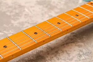 Классический телек на двух синглах с кленовой накладкой и струнами сквозь корпус. Технически без проблем, гриф ровный, анкер работает. Датчики керамика, все звучит, вложений не требует. По косметике без повреждений, в эксплуатации инструмент не был.