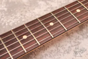 Ранний мексиканский скваер из начала 90х. Это модель в дальнейшем стала называться Fender Squier Series и ничем от нее не отличается кроме как декалью на голове. Эта Black Label серия отличались от стандартов только фурнитурой и электроникой, гриф и корпус идентичен обычным мексиканским фендерам того времени, анкер здесь само собой дюймовый. Недавн оставились новые лады, запас большой, все звучит и строит. Электроника и фурнитура родные. Косметически имеются коцки и потретости по лкп. но ничего серьезного.