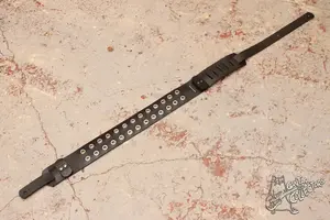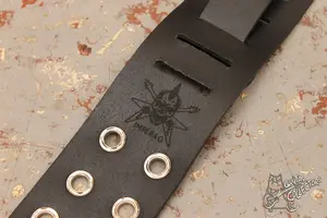 Гитарный ремень из натуральной кожи растительного дубления. Цвет чёрный, с люверсами. Ширина полосы 7 см, толщина ремня 4 мм