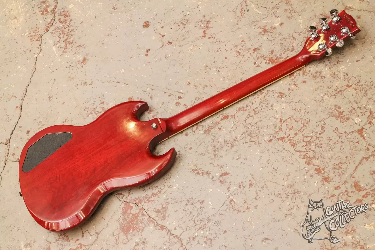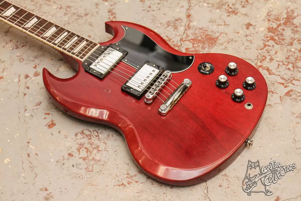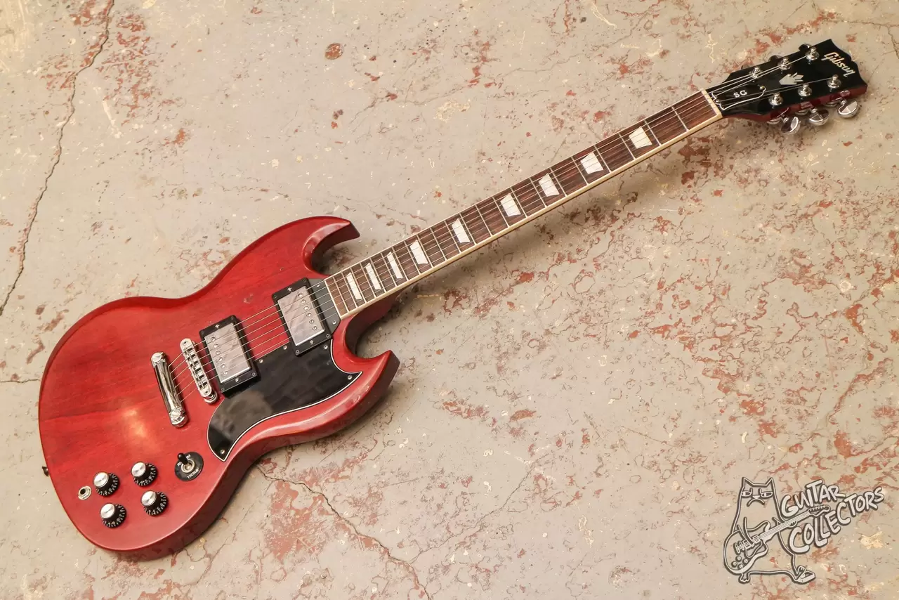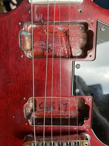 СГ стандарт. Технически в полном порядке, лады родные с запасом, биндинг на месте. Пикгард стоит от модели Reissue 61, поэтому на топе есть отверстия от родного пикгарда. Датчики стоят Gibson 57 Classic на коннекторах и с оригинальной платой Gibson в тембрблоке. Голова без ремонтов и трещин.