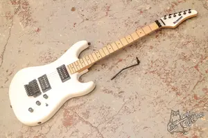 Классический суперстрат от Крамера из махагона с кленовой накладкой, флойдом над корпусом (без фрезеровки под него), флойд тут можно использовать как стратовское тремоло облокатив на корпус. Технически и косметически в очень хорошем состоянии, в эксплуатации инструмент практически не был.