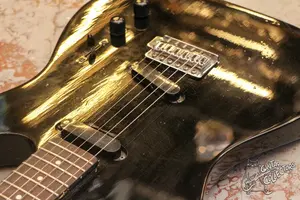 Ольховый телек с агрессивной голвоой, стратовским шестиболтовым тремоло, скошенной пяткой и скосом под “пузо”. Технически в порядке, гриф ровный, лады с запасом, строй держит. Косметически без серьезных повреждений, только мелкие коцки и потертости по лкп.