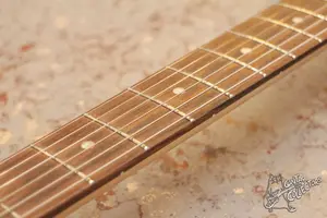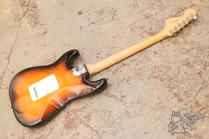 Ольховый скваер в классическом цвете с большой головой, тремя синглами и шестиболтовым тремоло. Инструмент в хорошем техническом состоянии, все исправно. По косметике есть небольшой скол по лаку, но в целом выглядит хорошо.