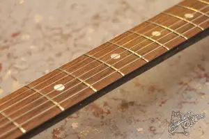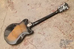 Ольховый даблкат с парой хамбов и струнами сквозь корпус. На удивление приятный и хорошо звучащий инструмент с длинющим сустейном. Технически в полном порядке, гриф ровный, струны низко, строй держит. Косметически для своег овозраста в хорошем состоянии. серьезных повреждений не наблюдается. Датчики заменены на сет неопознанных хамбов, колки заменены на grover.