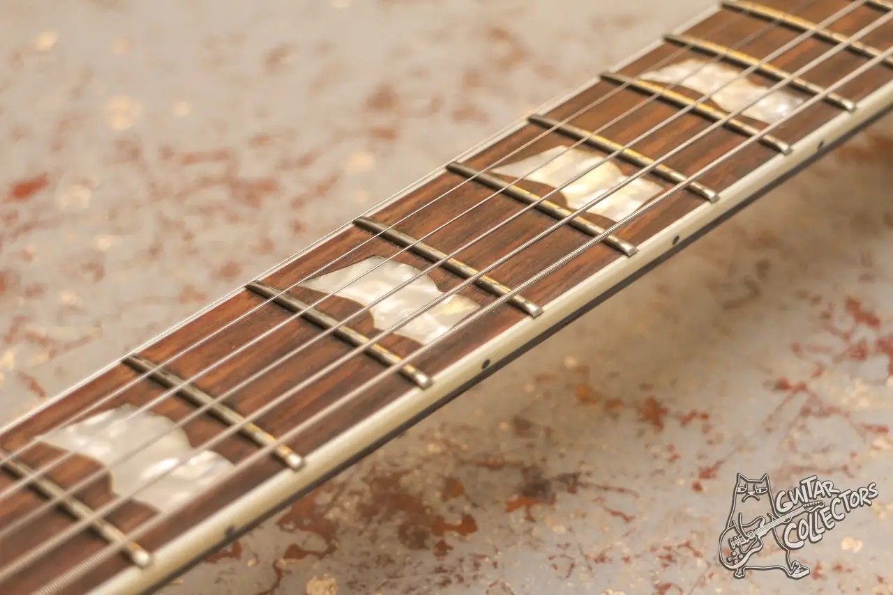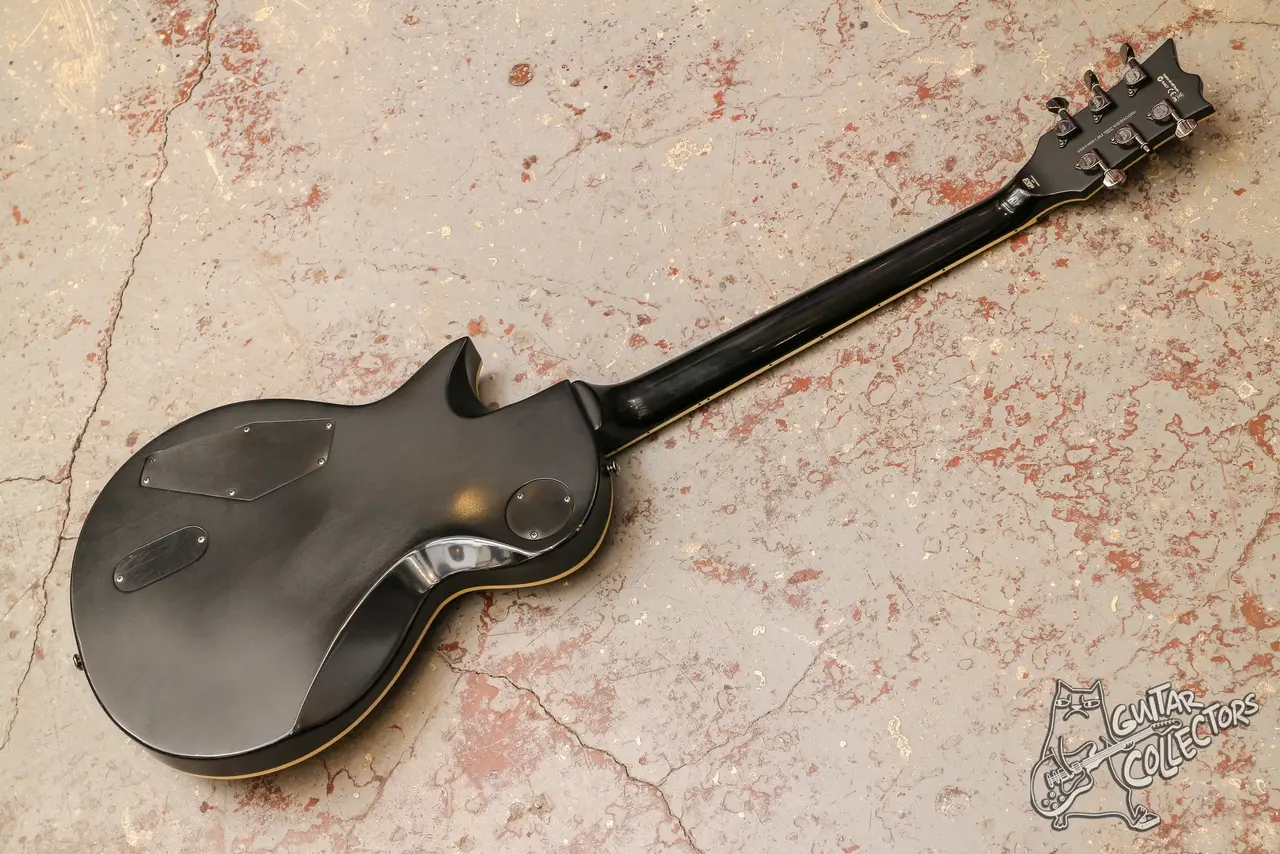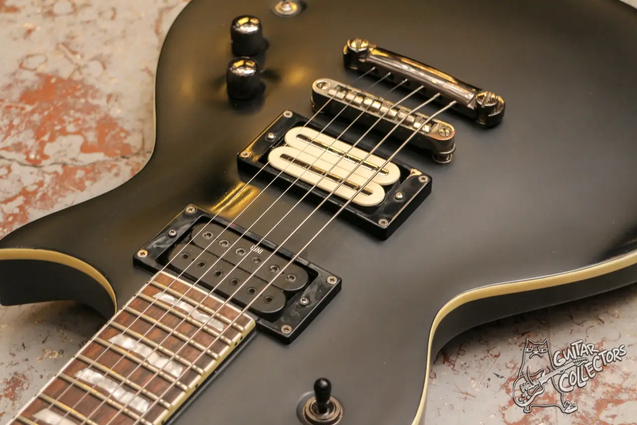 Черный матовый Les Paul из махагона с вклеенным грифом, улучшенной эргономикой и отсечкой на оба датчика. Технически инструмент в порядке, по грифу и ладам все ровно. Косметически без серьезных сколов, только небольшие коцки и потертости по лкп. Датчики заменены, в бридже стоит мощный рельсовый хамб Schaller, в неке Ibanez INF3, сделана отсечка на оба датчика.